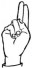 На ћирилици написано ГУСТАВ КИЦУЖИЋ састоји се из 13 слова [?]. Исписано ћириличном једноручном азбуком за глувонеме: